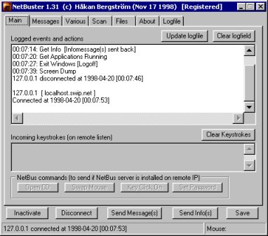 If NetBus was found you will be able to open/close his CD-Rom, turn on/off keyclick,