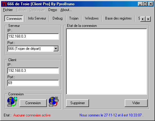 Client: port: 69 TCP Server: size: 450,560 bytes port: 666 TCP startup: none remark: server is visible