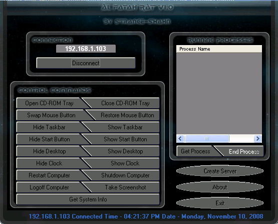 Server Size: 208,912 bytes Dropped File: c:\WINDOWS\system32\zlib.dll Size: 53,248 bytes Tested on Windows XP November 10, 2008
