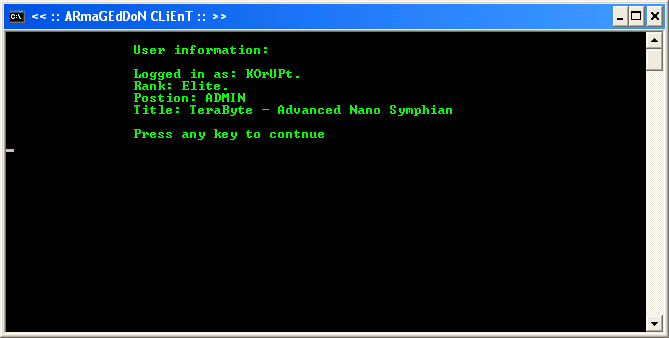 To use the Client you first have to login, The username, "KOrUPt" and the password,