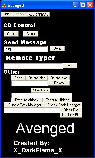 Server: dropped file: c:\WINDOWS\Server.exe size: 28,672 bytes startup: HKEY_LOCAL_MACHINE\SOFTWARE\Microsoft\Windows\CurrentVersion\Run "Start" data: C:\windows\Server.exe tested on Windows XP May 01, 2006MegaSecurity