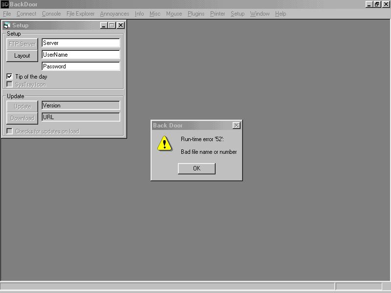 Server: c:\windows\notpa.exe size: 77.824 bytes port: 1999, 1003 TCP startup: HKLM\Software\Microsoft\Windows\CurrentVersion\Run