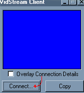 Click on the connect button on the VidStream client, and you'll be presented with a connection dialog. The number in the box is the default VidStream port. Modify the address to include the appropriate IP address (as returned by the server). Such as: aaa.bbb.ccc.ddd:15151. All of the other options should be their correct defaults. Hit the OK button and you should connect. If you mistyped something, got the port/address wrong, or picked the wrong network type/encryption/crypto-key, then it won't connect. But it all goes well, you'll see a little window into the other machine's desktop. Congrats.
