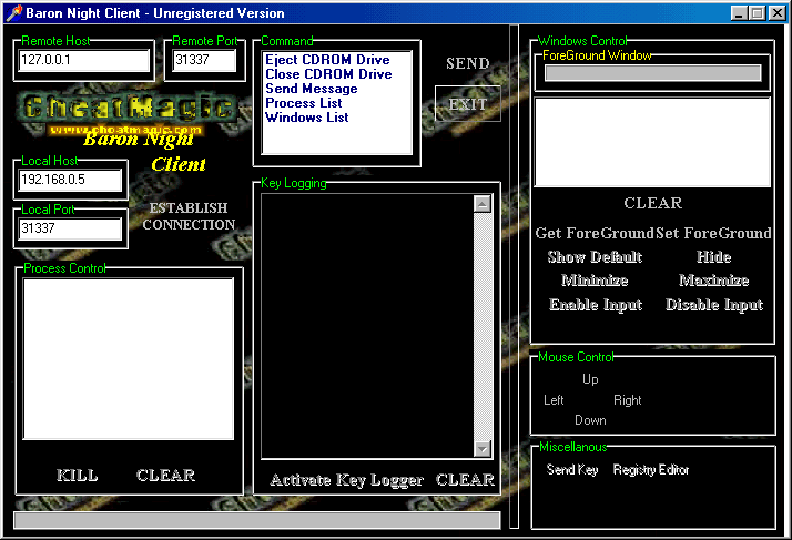 Server: port: 31337 TCP startup: none Server is visible