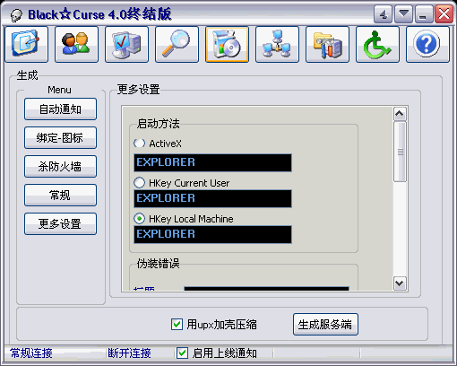 Server: dropped files: c:\WINNT\system32\EXPL0RER.EXE Size: 35,423 bytes c:\WINNT\system32\SP00LSV.EXE Size: 35,423 bytes port: 25555, 800 TCP startup: HKEY_LOCAL_MACHINE\SOFTWARE\Microsoft\Windows\CurrentVersion\Run "EXPLORER" data: EXPL0RER.EXE based on source of DarkMoon tested on Windows 2000 May 31, 2005MegaSecurity