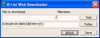 The downloader will instantly download the specified file and will run it on the specified date. The BList Web Downloader was coded in pure win32api to get the smallest possible filesize. Also it was designed to use the least memory space. Zed Server: dropped file: c:\WINDOWS\lsass.exe size: 3,362 bytes startup: HKEY_LOCAL_MACHINE\SOFTWARE\Microsoft\Windows\CurrentVersion\Run "System Starter" data: C:\WINDOWS\lsass.exe tested on Windows XP November 03, 2005MegaSecurity