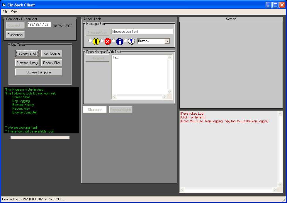 Server: size: 24,576 bytes port: 2999 TCP startup: none tested on Windows XP June 06, 2006
