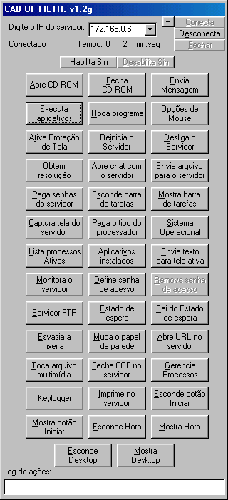 Server: size: 131.072 bytes port: 666 TCP startup: HKEY_LOCAL_MACHINE\Software\Microsoft\Windows\CurrentVersion\Run "COF" HKEY_LOCAL_MACHINE\Software\Microsoft\Windows\CurrentVersion\Run "WininitFile"MegaSecurity