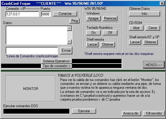 Server: size: 32.768 bytes port: 8888 TCP startup: none remark: server is visible