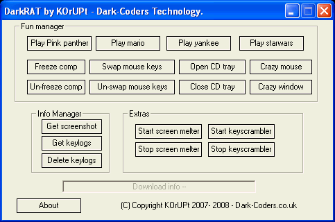 Server Dropped File: c:\Documents and Settings\%user%\ctr.exe Size: 26,624 bytes Added to Registry: HKEY_LOCAL_MACHINE\SOFTWARE\Microsoft\Windows\CurrentVersion\Run "GDI32" Tested on Windows XP January 11, 2008MegaSecurity
