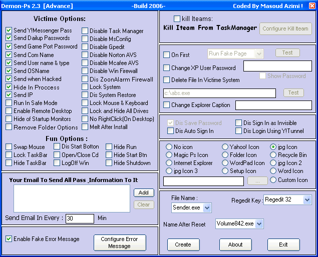 Server: dropped files: c:\WINDOWS\system32\Volume842.exe Size: 24,545 bytes c:\WINDOWS\system32\drivers\i.txt Size: 322 bytes c:\WINDOWS\system32\drivers\S.BAT Size: 74 bytes startup: HKEY_CURRENT_USER\Software\Microsoft\Windows\CurrentVersion\Policies\Explorer\Run "Regedit 32" data: C:\WINDOWS\System32\Volume842.exe HKEY_LOCAL_MACHINE\SOFTWARE\Microsoft\Windows\CurrentVersion\policies\Explorer\Run "Regedit 32" data: C:\WINDOWS\System32\Volume842.exe tested on Windows XP September 03, 2006MegaSecurity