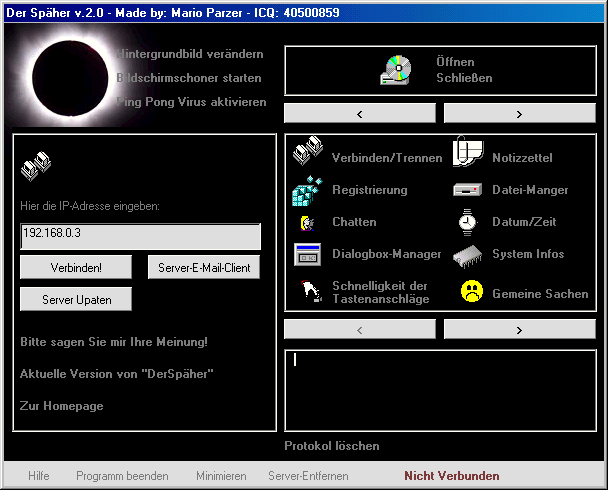 Server: C:\WINDOWS\System\dkbdll.exe c:\WINDOWS\COMMAND\Mome.exe size 229.888 bytes startup: HKLM\Software\Microsoft\Windows\CurrentVersion\Run "Explore" c:\windows\win.ini, "run" Added: c:\WINDOWS\COMMAND\Mome.exe c:\WINDOWS\SYSTEM\aBoota.bat c:\WINDOWS\SYSTEM\dkbdll.exe c:\WINDOWS\SYSTEM\Gci32q.dll Changed: c:\AUTOEXEC.BAT (call to aBoota.bat is added)MegaSecurity