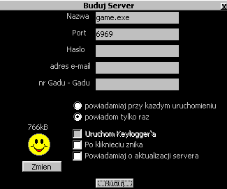 Server: dropped file: c:\WINDOWS\sys32.exe size: 852.002 bytes port: 6969 TCP startup: HKEY_CURRENT_USER\Software\Microsoft\Windows\CurrentVersion\Run "sys32"MegaSecurity