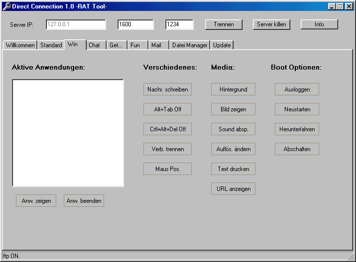 Server: size: 262.656 bytes port: 1600, 1601, 1602 TCP startup: HKEY_LOCAL_MACHINE\Software\Microsoft\Windows\CurrentVersion\Run "System-Tray"MegaSecurity