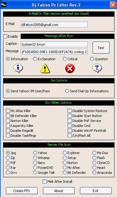 Server: dropped file: c:\WINDOWS\system32\explorer.exe size: 19,069 bytes added to registry: HKEY_LOCAL_MACHINE\SOFTWARE\Microsoft\Windows\CurrentVersion\Run "Microsoft" data: C:\WINDOWS\System32\explorer.exe tested on Windows XP October 05, 2006MegaSecurity