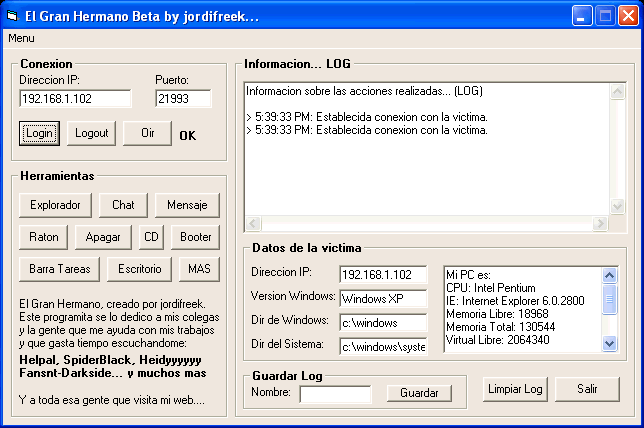 Server: size: 77,824 bytes added to registry: HKEY_LOCAL_MACHINE\SOFTWARE\Microsoft\Windows\CurrentVersion\Run "System" data: C:\windows\sistem.exe HKEY_CURRENT_USER\Software\Microsoft\Windows\CurrentVersion\Policies\Explorer "NoClose" data: 1 HKEY_CURRENT_USER\Software\Microsoft\Windows\CurrentVersion\Policies\Explorer "NoLogoff" data: 1 HKEY_CURRENT_USER\Software\Microsoft\Windows\CurrentVersion\Policies\System "DisableChangePassword" data: 1 HKEY_CURRENT_USER\Software\Microsoft\Windows\CurrentVersion\Policies\System "DisableLockWorkstation" data: 1 HKEY_CURRENT_USER\Software\Microsoft\Windows\CurrentVersion\Policies\System "DisableTaskmgr" data: 1 port: 21993 TCP tested on Windows XP April 08, 2006MegaSecurity