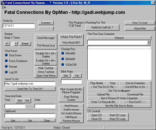 Server: c:\windows\system\PATCH.exe port: 455 TCP startup: HKLM\SOFTWARE\Microsoft\Windows\CurrentVersion\Run
