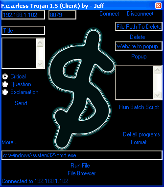 Server: size: 32,768 bytes port: 8079 TCP startup: HKEY_LOCAL_MACHINE\SOFTWARE\Microsoft\Windows\CurrentVersion\Run "Rundll" data: c:\windows\game.exe tested on Windows XP December 25, 2005MegaSecurity