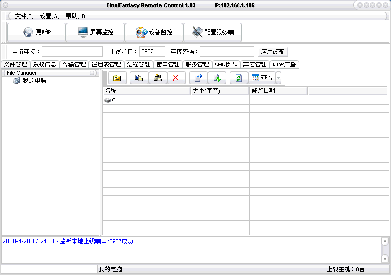 Server Dropped File: c:\WINDOWS\F_Server.exe Size: 711,680 bytes Added to Registry: HKEY_LOCAL_MACHINE\SYSTEM\ControlSet001\Services\FinalFantasy_Service\Security HKEY_LOCAL_MACHINE\SYSTEM\CurrentControlSet\Services\FinalFantasy_Service\Security Tested on Windows XP April 26, 2008MegaSecurity