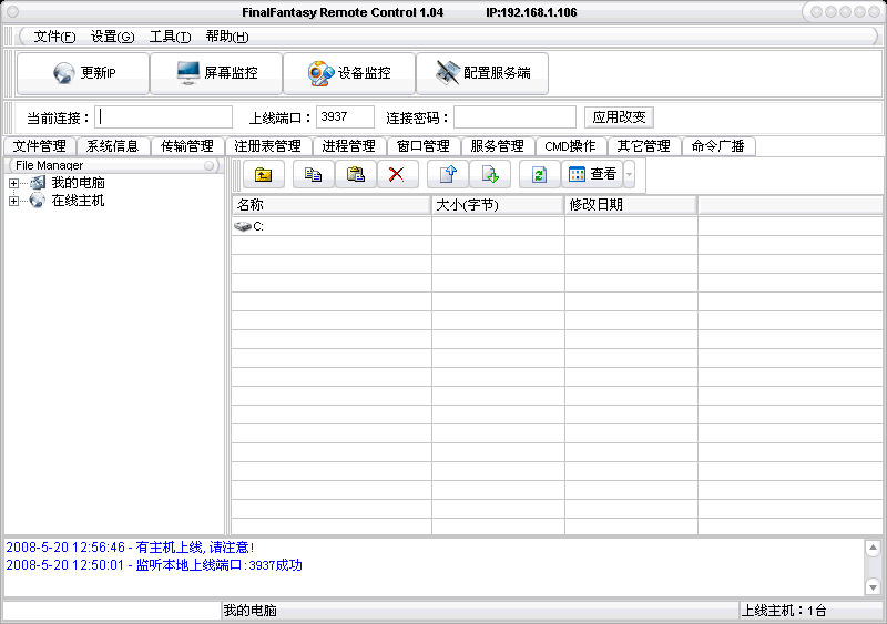 Server Dropped File: c:\WINDOWS\F_Server.exe Size: 716,288 bytes Added to Registry: HKEY_LOCAL_MACHINE\SYSTEM\ControlSet001\Services\FinalFantasy_Service "ImagePath" Data: C:\WINDOWS\F_Server.exe HKEY_LOCAL_MACHINE\SYSTEM\CurrentControlSet\Services\FinalFantasy_Service "ImagePath" Data: C:\WINDOWS\F_Server.exe Tested on Windows XP May 20, 2008MegaSecurity