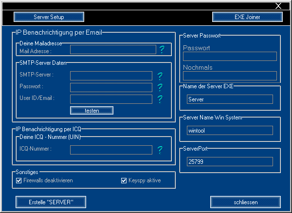 Server: C:\WINDOWS\wintool.exe size: 738 KB port: 25556, 25799 TCP startup: HKEY_LOCAL_MACHINE\Software\Microsoft\Windows\CurrentVersion\Run "wintool.exe"