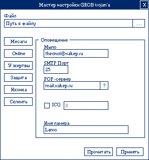Server: dropped file: c:\WINDOWS\MSDRV32.exe size: 71.368 bytes port: 31332 TCP startup: HKEY_CURRENT_USER\Software\Microsoft\Windows\CurrentVersion\Run "System drivers" HKEY_LOCAL_MACHINE\Software\Microsoft\Windows\CurrentVersion\Run "System drivers" HKEY_LOCAL_MACHINE\Software\Mirabilis\ICQ\Agent\Apps\ICQdat c:\windows\system.ini, [boot] "shell" c:\windows\win.ini, [windows] "run"MegaSecurity
