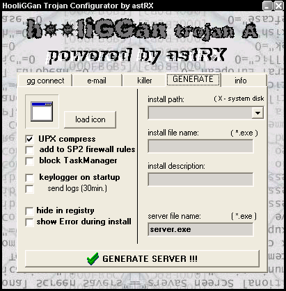 Server: dropped file: c:\WINDOWS\server.exe size: 842,746 bytes startup: HKEY_LOCAL_MACHINE\SOFTWARE\Microsoft\Windows\CurrentVersion\Run "none" data: C:/windows/server.exe tested on Windows XP May 14, 2006MegaSecurity
