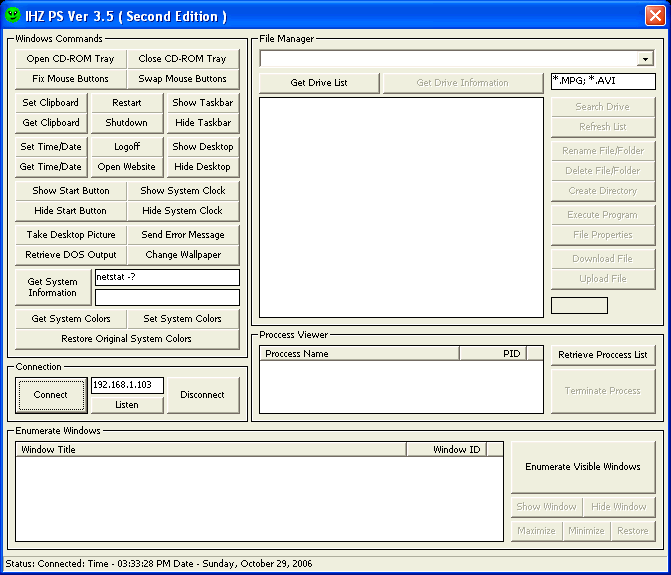 Server: dropped file: c:\WINDOWS\system32\zlib.dll size: 53,248 bytes port: 6116 TCP tested on Windows XP October 29, 2006
