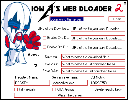 Server: dropped file: c:\WINDOWS\SYSTEM\videodriver.exe size: 38.912 bytes startup: HKEY_LOCAL_MACHINE\Software\Microsoft\Windows\CurrentVersion\Run "Drive32"
