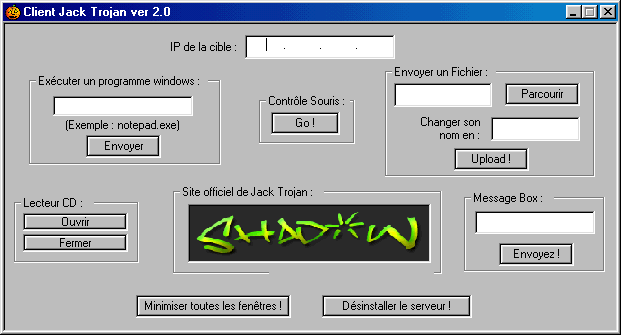 Server: dropped file: c:\WINDOWS\SYSTEM\trja32.exe size: 20.992 bytes port: 2040 TCP startup: HKEY_LOCAL_MACHINE\Software\Microsoft\Windows\CurrentVersion\Run "trja32.exe"MegaSecurity