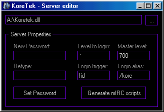 (This is a BETA version. There may be bugs but I have worked most all of them out. If you find any please email me. I haven't yet released this to the net, just a small group of people.) 1. Basic info a) koretek.dll - the dll that the bots use to authorize people. This file goes in the bot dir. b) kore.dll - the dll that your mirc client uses to encrypt your password and log in. This file goes in your mIRC dir. c) Config.exe - the program to configure koretek.dll with your own password and to generate the scripts that your botnet and mirc will use to log in. * d) IMPORTANT!! - To make this work you _MUST_ be sure that /dll is not disabled. You can unset this in the mIRC options by going to General>Lock and unchecking the box that says '/dll.' 2. Setting up It's pretty easy to get this set up. Just follow these steps: 1. Run config.exe 2. Choose youre koretek.dll file and for the password enter 'new' (Note: This will only work once. Keeping a copy of the original koretek.dll is strongly suggested) 3. Change the password (IMPORTANT FOR SECURITY!) 4. Set up the scripts: a) Level to login - level required to login. b) Master level - level given if valid login c) Login Trigger - command to login d) Login alias - alias for automatically logging you into the bots Note: This will generate two scripts called client- side.mrc and server-side.mrc. Just like the names imply, client-side is the script you need to load in your mirc. (/load -rs client- side.mrc) server-side.mrc needs to be loaded in the botnet. (/load -rs server-side.mrc) If you want to script the code yourself feel free to do so.. This was made to be easy for the newbiez and lazy fucks. ;)~ Also, I encourage you to edit the script (especially the server-side one) after you have them generated to customize them to your bot. These are made as guidelines and they will replace your old login methods. 5. copy the kore.dll and koretek.dll a) copy the kore.dll to YOUR mirc dir. b) copy the koretek.dll into the botnet dir. 3. Encryption info It's really late so I'm not going to write a lot now, but my encryption uses what I like to call polymorphing algorithm. It is very complex encryption that even I couldn't break. And I coded the fuckin thing. Brute forcing this encryption would also be VERY hard because I've put in some methods of defense against that. As far as I can see, this is a very secure method and would be VERY difficult to crack. If you can't tell, the mirc script sends your host to the dll which encrypts it and sends it to the bots which use their dll (koretek.dll) to check the encrypted host. This way no password will be the same. Unless somebody can spoof your exact host, or you are a dumbass and give them the password to your KoreTek file, they won't be able to crack your shit even if they watch you login every day. :) NaHeMiAMegaSecurity
