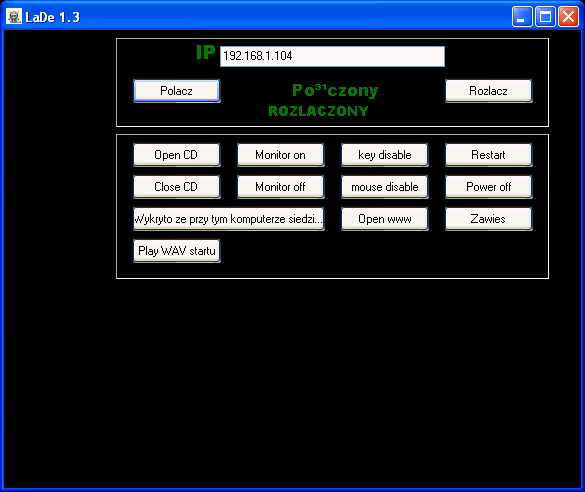Server: dropped file: c:\Documents and Settings\%user%\Desktop\LaDe 1.3\WINDOWSSystem32serw.exe size: 392,192 bytes port: 21 TCP added to registry: HKEY_CURRENT_USER\SoftwareMicrosoftWindowsCurrentVersionRun "SERVER" data: C:WINDOWSSystem32serw.exe tested on Windows XP April 03, 2007MegaSecurity