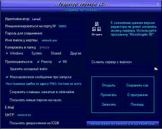 Server: dropped file: c:\WINDOWS\winsock.exe size: 230.609 bytes port: 30003 TCP startup: HKEY_LOCAL_MACHINE\Software\Microsoft\Windows\CurrentVersion\Run "winsock.exe" HKEY_LOCAL_MACHINE\Software\Microsoft\Windows\CurrentVersion\RunOnce "winsock.exe" HKEY_LOCAL_MACHINE\Software\Microsoft\Windows\CurrentVersion\RunServices "winsock.exe" HKEY_LOCAL_MACHINE\Software\Microsoft\Windows\CurrentVersion\RunServicesOnce "winsock.exe" c:\windows\win.ini, [windows] "load" c:\windows\win.ini, [windows] "run"MegaSecurity