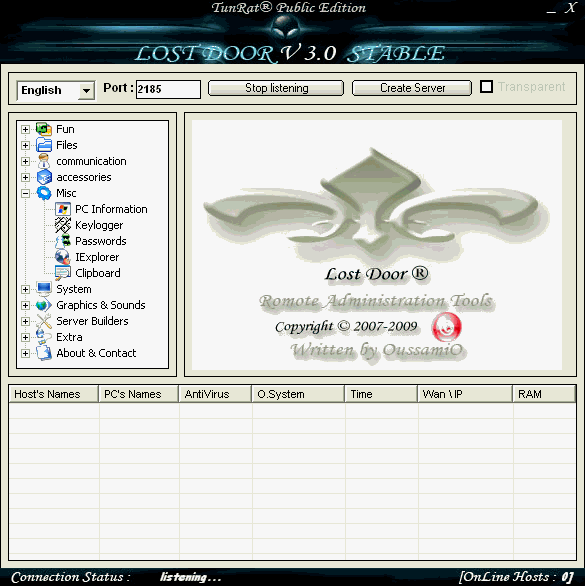 This Rat Is Totally Offred For Gabriela Zeranska Server Dropped File: c:\WINDOWS\system32\svhost.exe Size: 108,202 bytes Added to Registry: HKEY_CURRENT_USER\Software\VB and VBA Program Settings\Windowss\system32 "Start" HKEY_LOCAL_MACHINE\SOFTWARE\Microsoft\Windows\CurrentVersion\Run "winupdate" Data: C:\WINDOWS\system32\svhost.exe Tested on Windows XP October `13, 2008MegaSecurity