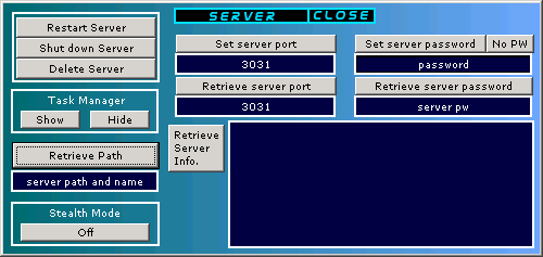 Server: dropped file: c:\WINNT\fxdfcvct.exe size: 261.120 bytes port: 3031 TCP startup: HKEY_LOCAL_MACHINE\SOFTWARE\Microsoft\Windows\CurrentVersion\Run "Mic32" data: C:\WINNT\fxdfcvct.exe tested on Win2000MegaSecurity