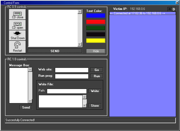 Server: dropped file: c:\WINDOWS\RShell.exe size: 40.960 bytes port: 186 TCP startup: HKEY_LOCAL_MACHINE\Software\Microsoft\Windows\CurrentVersion\Run "RShell" data: C:\WINDOWS\RShell.exeMegaSecurity