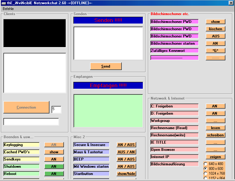 Chat Server: size: 147.456 bytes port: 5 TCP startup: none added: c:\WINDOWS\SYSTEM\Kernel.exe size: 147.456 bytes