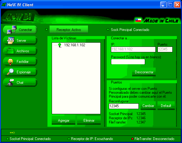 Server: dropped files: c:\WINDOWS\svchost.exe Size: 1,007,657 bytes c:\WINDOWS\system32\CamServer.dll Size: 31,744 bytes port: 8675 TCP startup: HKEY_LOCAL_MACHINE\SOFTWARE\Microsoft\Windows\CurrentVersion\Run "svchost" data: C:\WINDOWS\svchost.exe tested on Windows XP April 22, 2006MegaSecurity