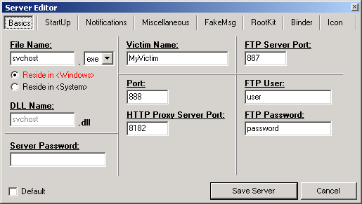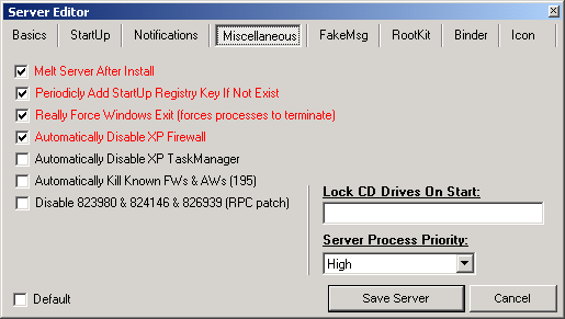 - on 2k3 is not working remove server, after remove you must kill "trojan.exe" process in taskmanager and everything will be removed... [fixed in fully v.1.98]