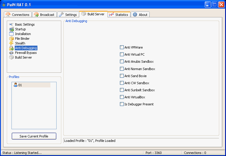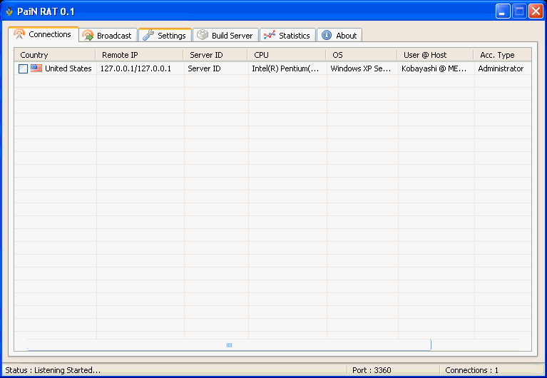 Server Size: 176,640 bytes Tested on Windows XP August 11, 2008