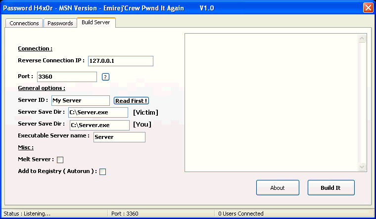 Server Dropped File: c:\Server.exe Size: 22,016 bytes Tested on Windows XP May 05, 2008