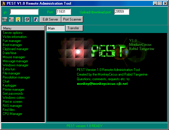 server.exe file, run the 'PEST v1.exe' (the client part of PEST) on your computer.