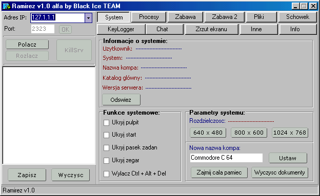 Server: size: 814.080 bytes port: 2323, 3232, 1988 TCP startup: HKEY_LOCAL_MACHINE\Software\Microsoft\Windows\CurrentVersion\Run "SCANDISC"