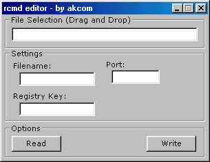 just a small remote command prompt because controlling my pc from a mac through telnet is fun :) which reminds me: to use this, just connect to the server on the port you specified then enter commands just as you would if it was dos :) akcom Server: c:\WINDOWS\SYSTEM\rcmd.exe size: 3.584 bytes port: 65534 TCP startup: HKEY_LOCAL_MACHINE\Software\Microsoft\Windows\CurrentVersion\Run "remote cmd"MegaSecurity