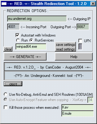 Server: dropped file: c:\WINDOWS\winpad64.exe size: 12.288 bytes port: 4001 TCP startup: HKEY_LOCAL_MACHINE\Software\Microsoft\Windows\CurrentVersion\RunServices "exe.46dapniw" data: winpad64.exeMegaSecurity