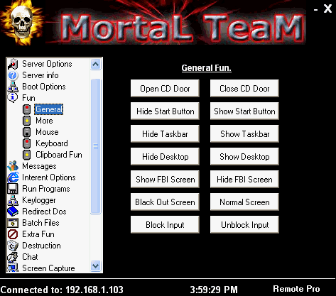 Server: dropped files: c:\WINDOWS\system\Update.exe size: 409,755 bytes port: 876, 1216, 958 TCP startup: HKEY_CURRENT_USER\Software\Microsoft\Windows\CurrentVersion\Run "Windows Updates" data: c:\windows\system\Update.exe HKEY_LOCAL_MACHINE\SOFTWARE\Microsoft\Windows\CurrentVersion\Run "Windows Updates" data: c:\windows\system\Update.exe tested on Windows XP October 10, 2006MegaSecurity