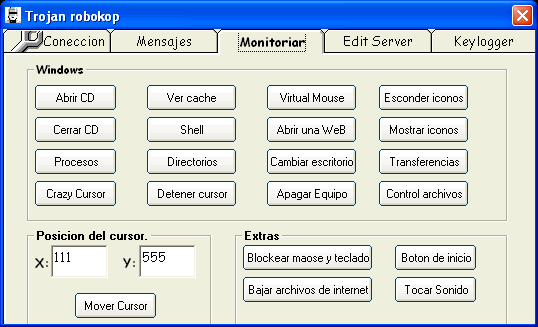 Server: dropped files: c:\WINDOWS\Wallpaper_Robokop.exe size: 98,304 bytes port: 4444, 7773, 7776, 7777, 7779 TCP startup: HKEY_CURRENT_USER\Software\Microsoft\Windows\CurrentVersion\Run "WinXplayer" data: C:\Documents and Settings\Kobayashi\Desktop\robokop\server .exe tested on Windows XP April 21, 2006MegaSecurity