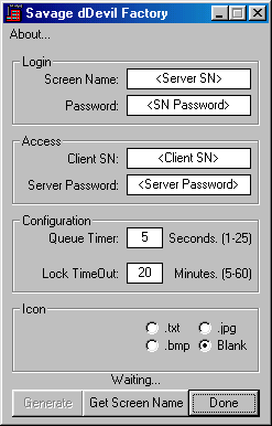 This trojan was developed solely by Chalex. It works by logging into an aim screen name supplied when you use